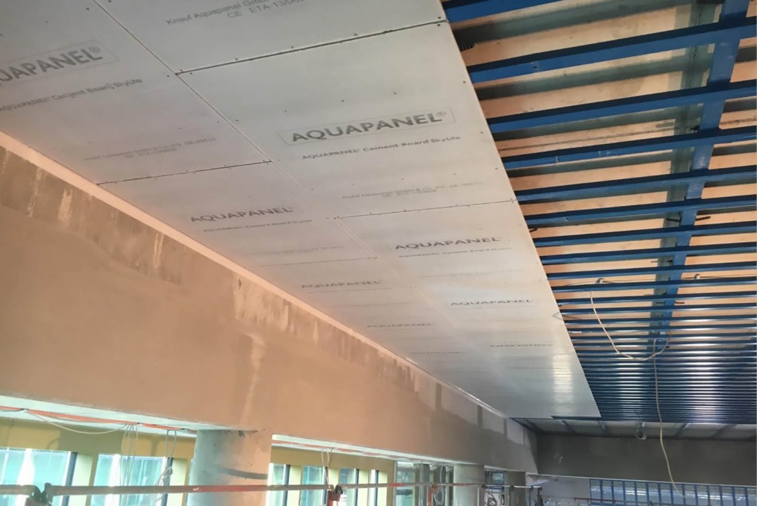 Аквапанель Knauf цементная плита Скайлайт 1200х900х8 мм, лист купить в Сургуте по оптовой цене в интернет магазине СтройПлатформа. Цементная плита Аквапанель Кнауф Скайлайт - легкая и надежная цементная плита для применения в конструкциях внутренних и наружных потолков.