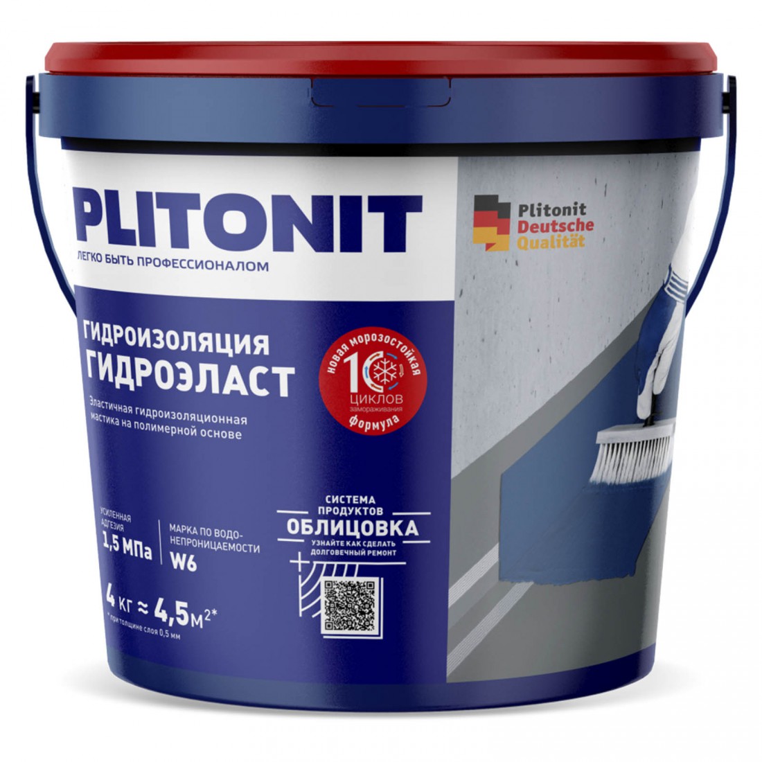 Мастика гидроизоляционная Plitonit ГидроЭласт 4 кг, шт купить в Сургуте по оптовой цене в интернет магазине СтройПлатформа.