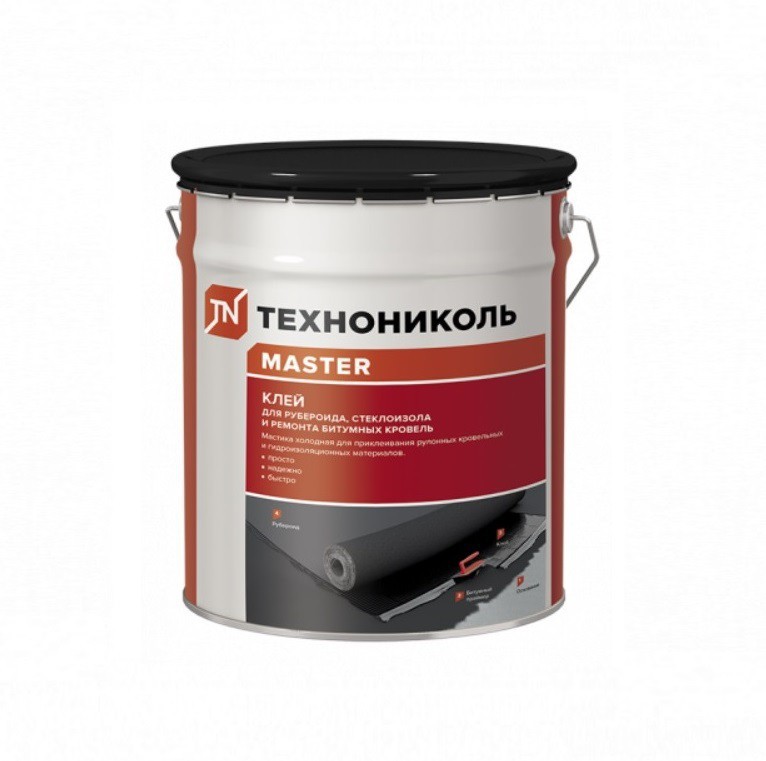 Клей для рубероида ТехноНиколь 10 кг, шт купить в Сургуте по оптовой цене в интернет магазине СтройПлатформа. Клей для рубероида ТехноНиколь производится из битума с добавлением специальных добавок и растворителя. Многокомпонентная масса применяется для приклеивания к бетонному или цементно-песчаному основанию рубероида, стеклоизола и других рулонных битумных материалов с защитным нижним слоем из песка. Кроме того, при помощи данного клея фиксируют нахлесты при укладке битумного материала. Расход массы составляет от 1,5 до 2 кг на метр квадратный при склеивании двух слоев. Если предстоит склеить три слоя, расход следует увеличить вдвое.