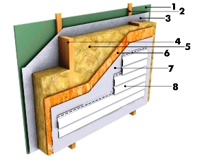 Система каркасной стены с отделкой под декоративную тонкослойную штукатурку