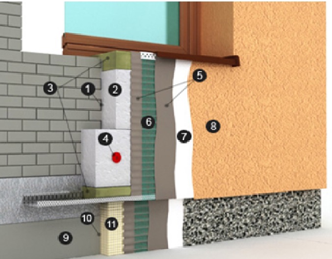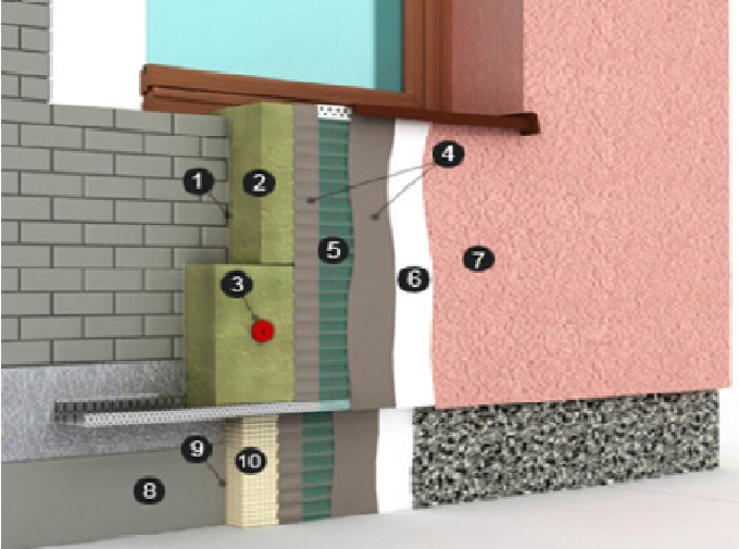 Система теплоизоляции штукатурного фасада(мокрого фасада) бывает 2-х типов: на минераловатной плите и на пенополистироле.