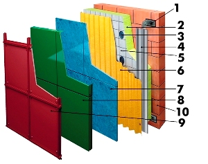 Вентилируемые фасады – особая облицовочная система, состоящая из отдельных модулей, фиксирующихся к металлическому каркасу, прикрепленному к несущей поверхности стены.