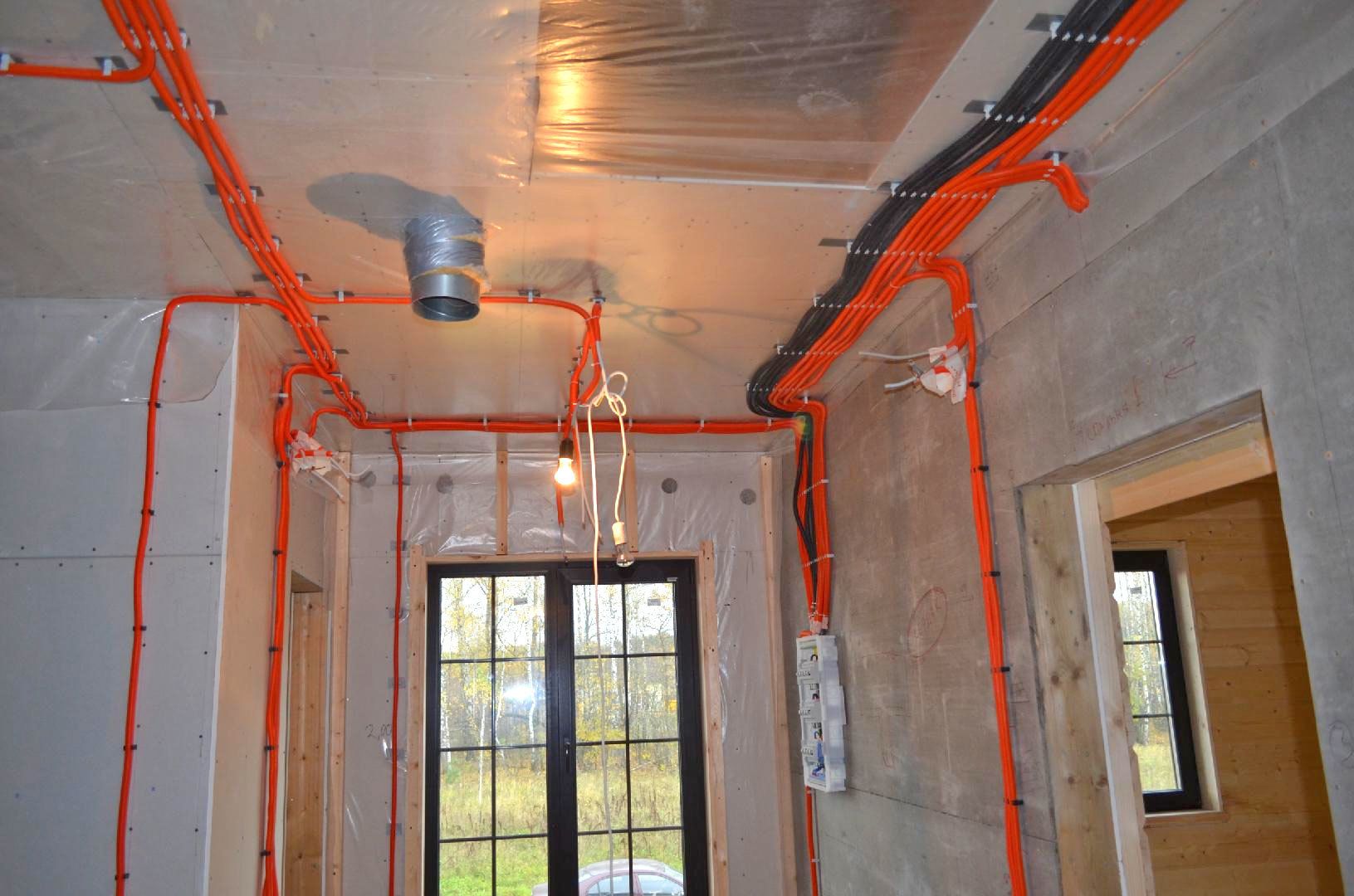 Зимний период — идеальное время для черновой электрики. Кабели, подрозетники, коробки, автоматы, гофра — всё это можно прокладывать без привязки к погоде. Важно лишь, чтобы стена, в которую штробят, не была промёрзшей.