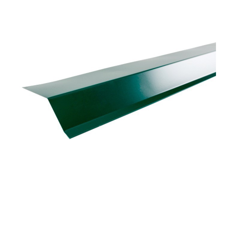 Планка карнизная полиэстер RAL 6005 зеленая 75х50х5 мм, 2 м, шт купить в Сургуте по оптовой цене в интернет магазине СтройПлатформа. Карнизная планка предназначена для усиления кровельных свесов. Кроме того, изделие перенаправляет сточные потоки в желоб и защищает подкровельное пространство от влаги при сильном боковом дожде.
