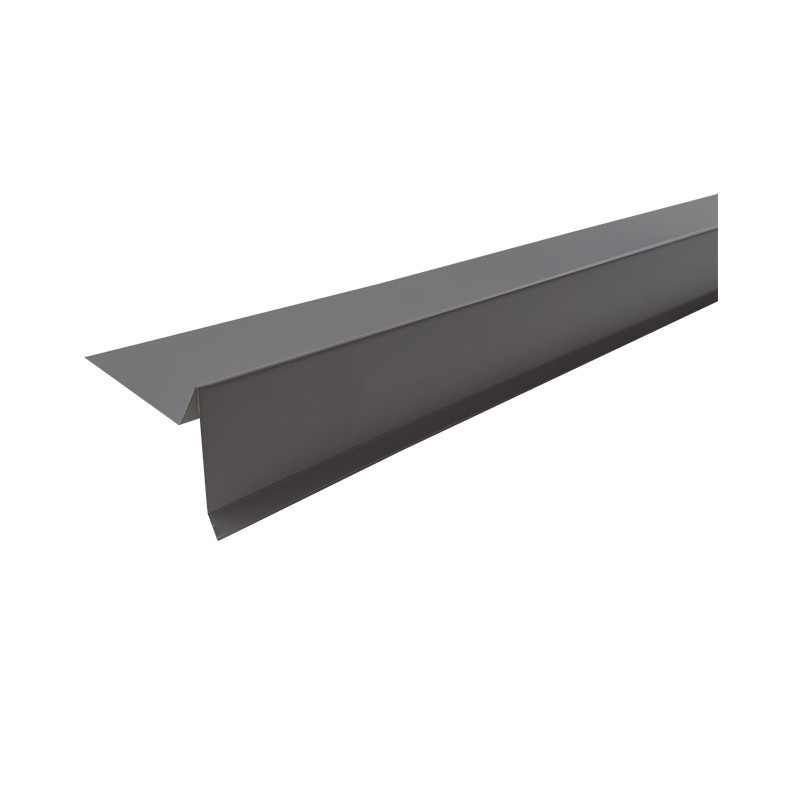 Планка торцевая полиэстер RAL 7024 темно-серая 75х25х65х5 мм, 2 м, шт купить в Сургуте по оптовой цене в интернет магазине СтройПлатформа. Торцевая планка - это доборный элемент к гибкой черепице, выполненный из оцинкованной стали толщиной 0,45 мм, с наружной стороны нанесено цветное защитное полимерное покрытие Полиэстер. При помощи торцевой планки оформляют фронтоны на кровлях с покрытием из гибкой черепицы.
