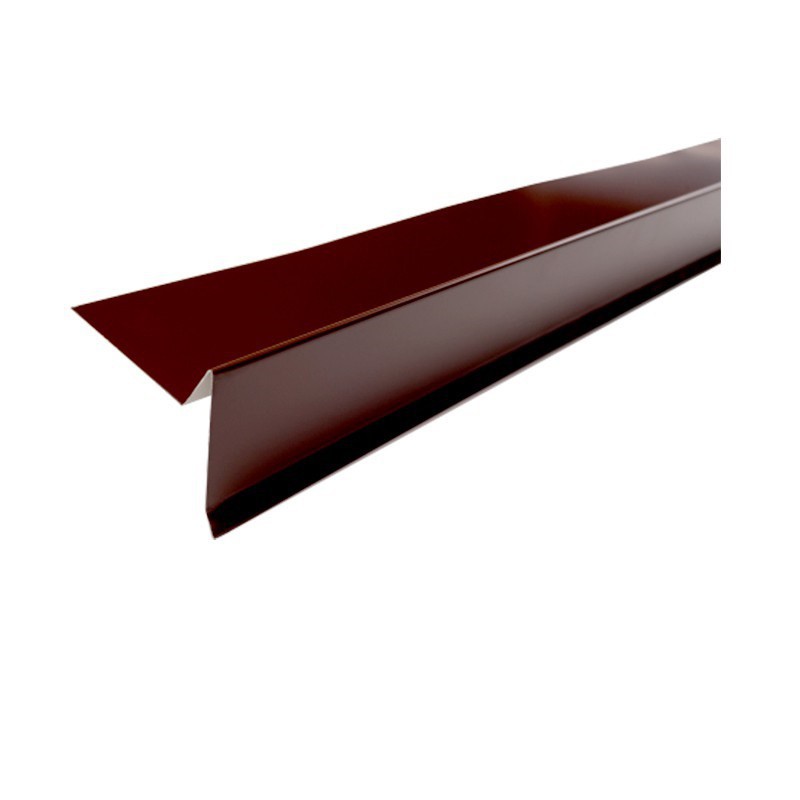 Планка торцевая полиэстер RAL 8017 коричневая 75х25х65х5 мм, 2 м, шт купить в Сургуте по оптовой цене в интернет магазине СтройПлатформа. Торцевая планка - это доборный элемент к гибкой черепице, выполненный из оцинкованной стали толщиной 0,45 мм, с наружной стороны нанесено цветное защитное полимерное покрытие Полиэстер. При помощи торцевой планки оформляют фронтоны на кровлях с покрытием из гибкой черепицы.