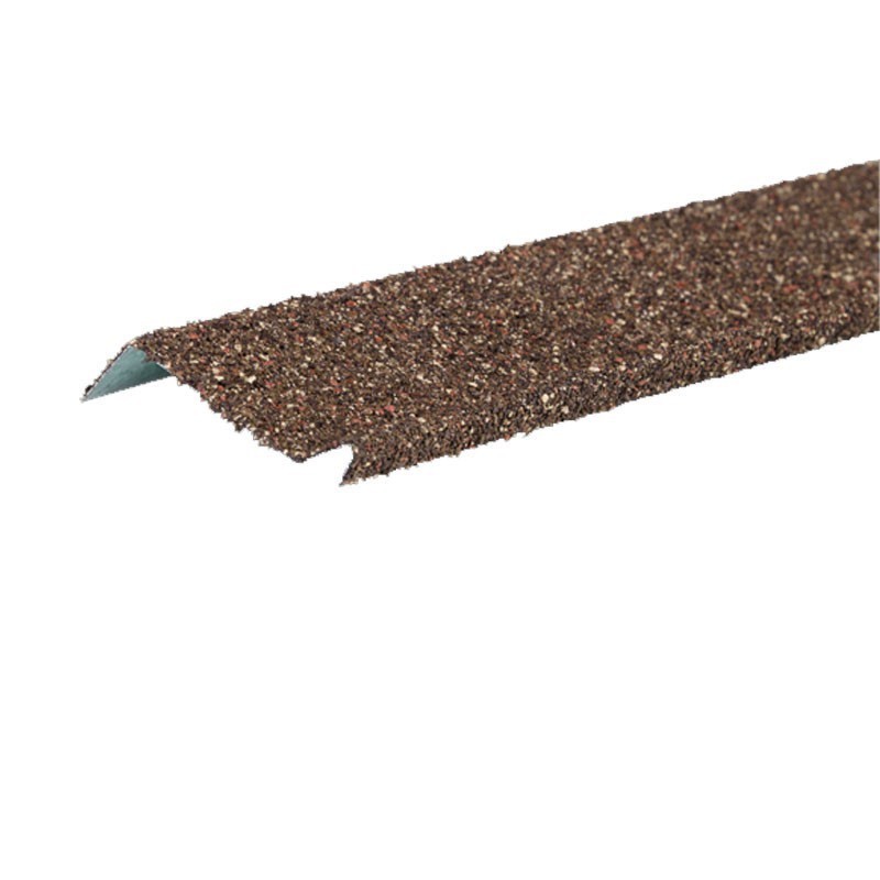 Планка примыкания с гранулятом, бронзовый 20х45х15х10 мм, 1,25 м, шт купить в Сургуте по оптовой цене в интернет магазине СтройПлатформа. Доборный элемент к гибкой черепице, выполненный из оцинкованной стали с покрытием из гранул из натурального базальта.