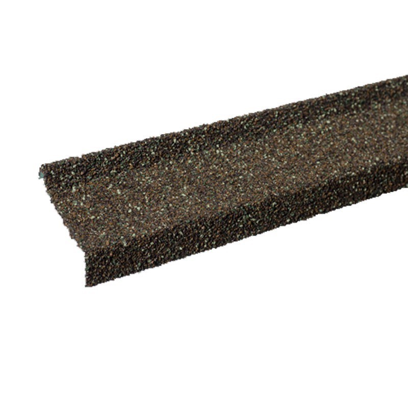 Планка примыкания с гранулятом, коричнево-зеленый 20х45х15х10 мм, 1,25 м, шт купить в Сургуте по оптовой цене в интернет магазине СтройПлатформа. Доборный элемент к гибкой черепице, выполненный из оцинкованной стали с покрытием из гранул из натурального базальта.