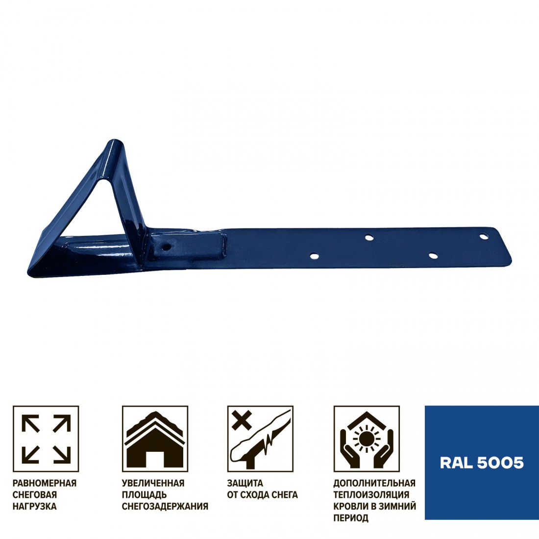 Снегозадержатель усиленный для гибкой черепицы Технониколь Ral 5005 синий, шт купить в Сургуте по оптовой цене в интернет магазине СтройПлатформа. Снегозадержатель усиленный для гибкой черепицы представляет собой металлический уголок с цветным полимерным покрытием на удлиненной ножке, который устанавливается непосредственно в процессе укладки кровельного покрытия. Этот элемент эффективно препятствует лавинообразному сходу снега, защищая водосточную систему и обеспечивая равномерную нагрузку на кровлю.