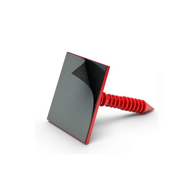 Изготавливается из полиэтилена низкого давления. Крепеж представляет собой шип с зубцами для фиксации в материале и плоскую прощадку с приклеивающим слоем, который защищен легкоснимающейся силиконезированной пленкой.