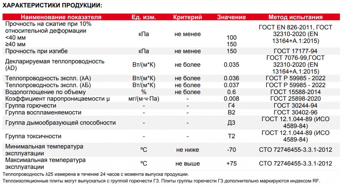 Плотность, кг/м3: | 20-45 кг/м3 |