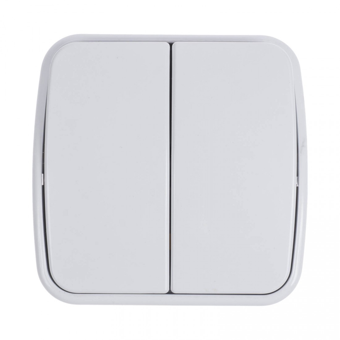 Выключатель для открытой проводки, двухклавишный, белый, шт купить в Сургуте по оптовой цене в интернет магазине СтройПлатформа.