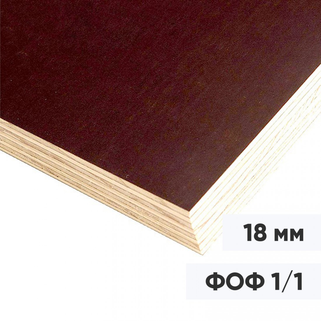Фанера ФОФ 18 мм ламинированная, сорт 1/1, береза, 2440х1220, лист купить в Сургуте по оптовой цене в интернет магазине СтройПлатформа. Фанера березовая марки ФОФ (ламинированная) - это фанера повышенной влагостойкости, состоящая из склеенных между собой тонких слоев шпона, облицована специальной пленкой плотностью 120 г/м2 темно коричневого цвета. Ламинированная поверхность фанеры препятствует проникновению влаги, имеет высокую устойчивость к истиранию, химикатам, образованию грибка и плесени. Торцы фанеры окрашены водостойкой краской.