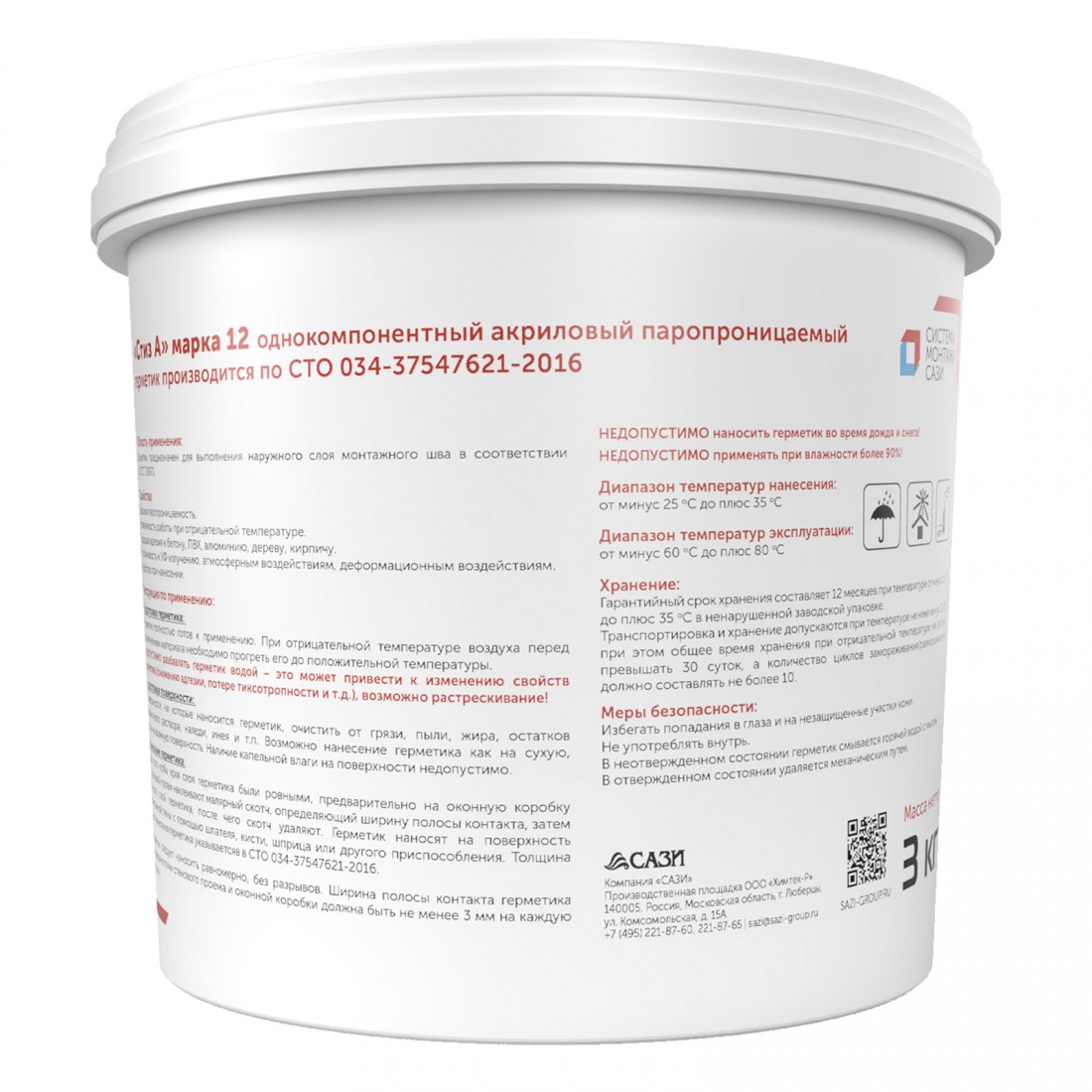 Герметик акриловый Стиз А наружный белый 3 кг, шт купить в Сургуте по оптовой цене в интернет магазине СтройПлатформа.