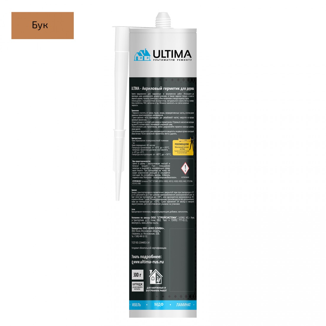Герметик акриловый Ultima для дерева бук 300 мл, шт купить в Сургуте по оптовой цене в интернет магазине СтройПлатформа. Профессиональный герметик на акриловой основе специально разработан для долговременной герметизации швов и стыковых соединений в деревянном домостроении, а также заделки сколов и усадочных трещин на поверхностях дерева, появляющихся в процессе естественной эксплуатации строений. Герметик возможно применять по стандартным минеральным поверхностям таким как, бетон, цементно-песчанная штукатурка, кирпич и т.д., а также по ПВХ и некоторым видам пластика. Возможно применение по окрашенным основаниям, в том числе металлическим. Подходит для горизонтальных, вертикальных швов с положительными и отрицательными углами наклона. После полной полимеризации возможно окрашивание эластичными воднодисперсионными составами. Для внутренних и наружных работ.
