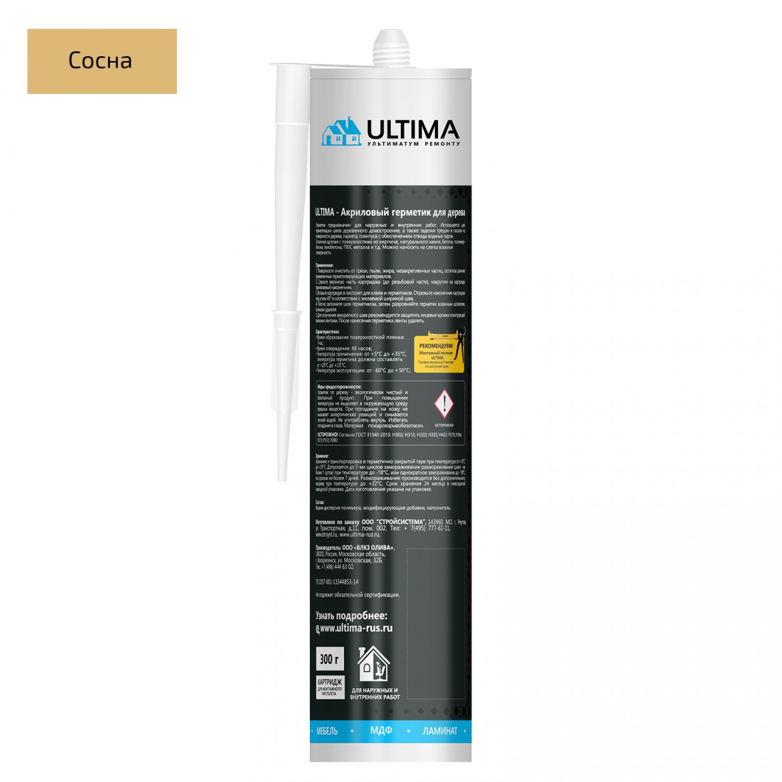 Герметик акриловый Ultima для дерева сосна 300 мл, шт купить в Сургуте по оптовой цене в интернет магазине СтройПлатформа. Профессиональный герметик на акриловой основе специально разработан для долговременной герметизации швов и стыковых соединений в деревянном домостроении, а также заделки сколов и усадочных трещин на поверхностях дерева, появляющихся в процессе естественной эксплуатации строений. Герметик возможно применять по стандартным минеральным поверхностям таким как, бетон, цементно-песчанная штукатурка, кирпич и т.д., а также по ПВХ и некоторым видам пластика. Возможно применение по окрашенным основаниям, в том числе металлическим. Подходит для горизонтальных, вертикальных швов с положительными и отрицательными углами наклона. После полной полимеризации возможно окрашивание эластичными воднодисперсионными составами. Для внутренних и наружных работ.