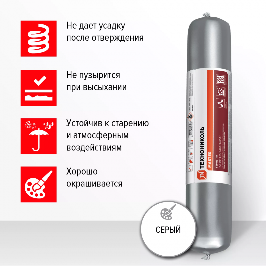 Герметик полиуретановый ТехноНиколь ПУ MASTER серый 600 мл, шт купить в Сургуте по оптовой цене в интернет магазине СтройПлатформа. Герметик ТехноНиколь ПУ MASTER это универсальный однокомпонентный полиуретановый герметик. Герметик полимеризуется под взаимодействием влаги воздуха с образованием прочного герметичного соединения.