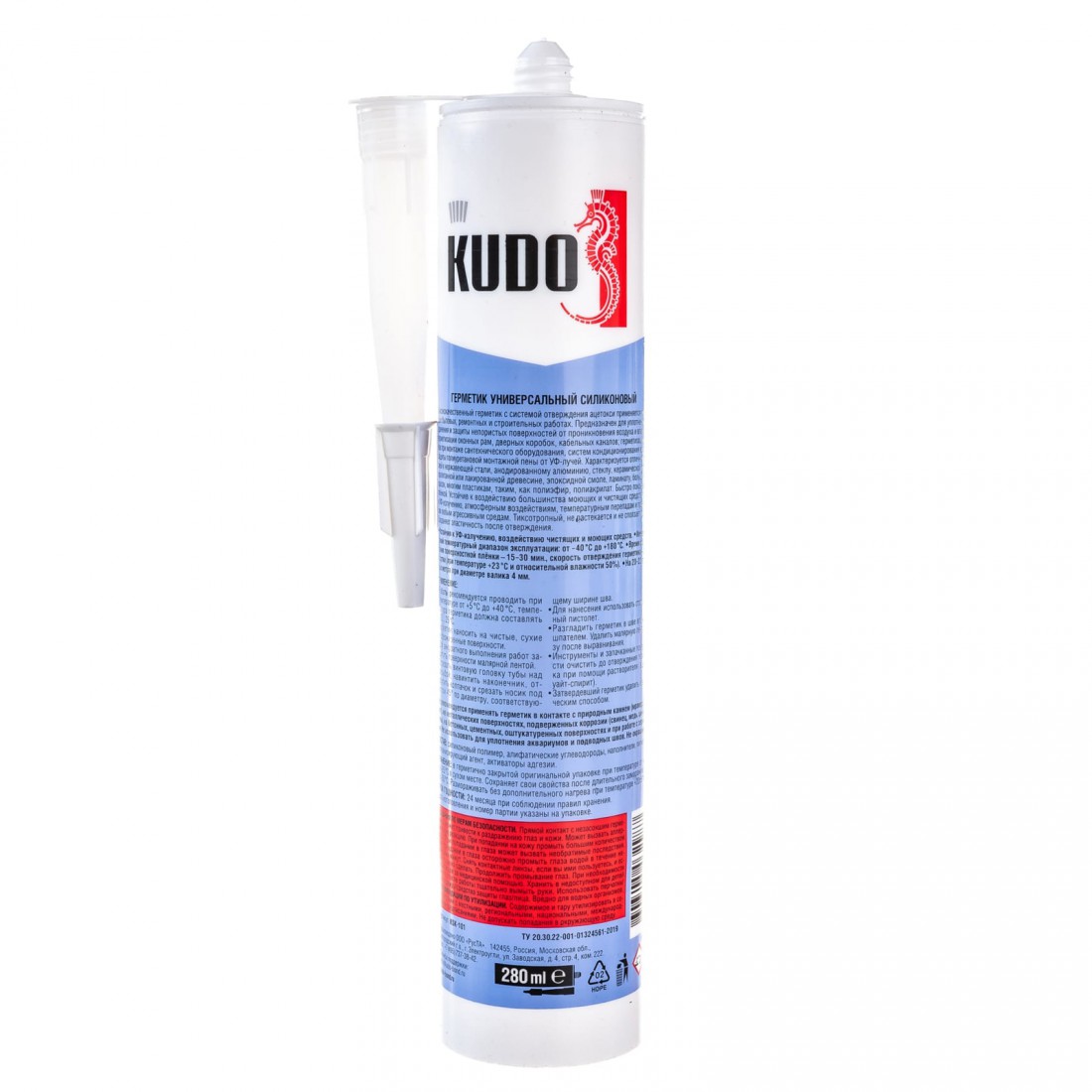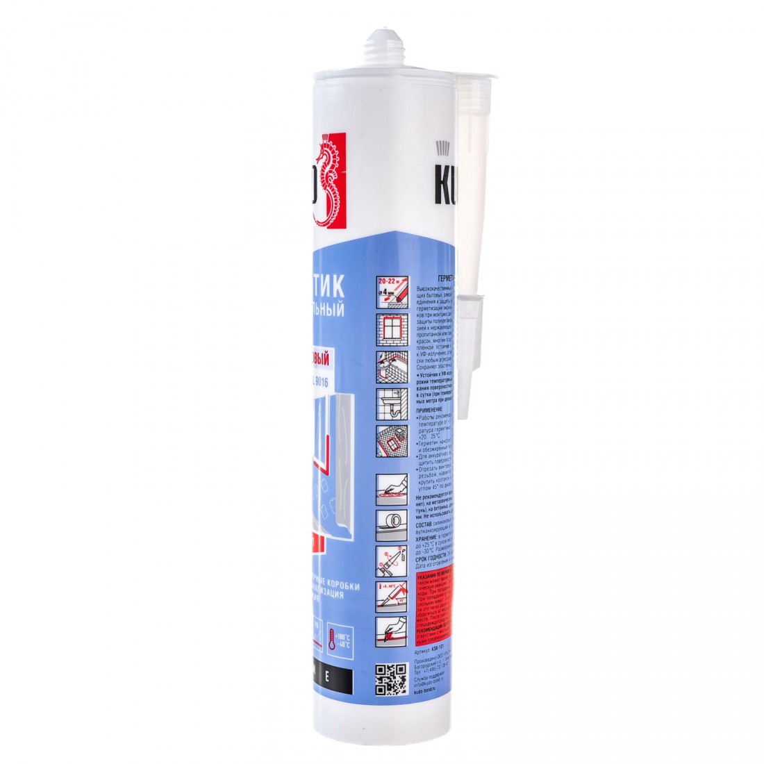 Герметик силиконовый Kudo KSK-101 универсальный белый 280 мл, шт купить в Сургуте по оптовой цене в интернет магазине СтройПлатформа. Высококачественный герметик с системой отверждения ацетокси применяется при общих бытовых, ремонтных и строительных работах для уплотнения, соединения и защиты непористых поверхностей от проникновения воздуха и влаги, для герметизации оконных рам, дверных коробок, кабельных каналов и для герметизации стыков при монтаже сантехнического оборудования, систем кондиционирования воздуха; защиты полиуретановой монтажной пены от УФ‑лучей. Обладает отличной адгезией к нержавеющей стали, анодированному алюминию, стеклу, керамической плитке, пропитанной или лакированной древесине, эпоксидной смоле, ламинату, большинству красок, многим пластикам, таким, как полиэстер, полиакрилат.