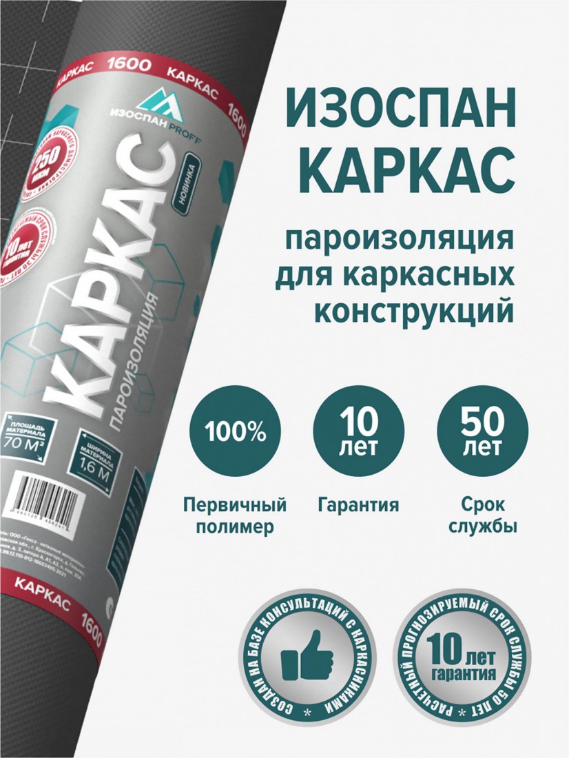 Пароизоляционная пленка Изоспан Каркас многослойная 70 м2 (1,6х43,75 м), рул купить в Сургуте по оптовой цене в интернет магазине СтройПлатформа.