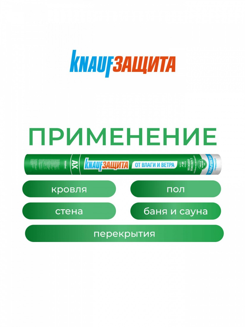 Гидро-ветрозащитная мембрана Knauf Защита AX супердиффузионная 60 м2, рул купить в Сургуте по оптовой цене в интернет магазине СтройПлатформа. KnaufЗащита AX Гидро-ветро защитная супердиффузионная мембрана – это трехслойный материал высокой прочности, состоящий из функционального микропористого водонепроницаемого слоя, скрепленного с двух сторон нетканым полипропиленовым полотном. Оснащенный клеевой полосой для удобства и сокращении времени монтажа. Устойчив к воздействию плесени, бактерий и УФ-излучения. Высокая паропроницаемости способствует выходу из строительных конструкций излишней влаги.