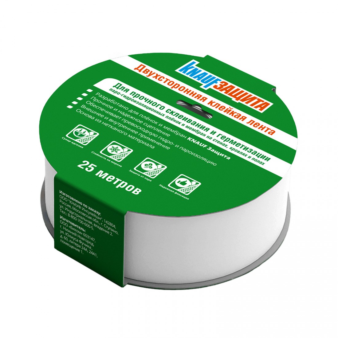 Лента соединительная Knauf Защита двухсторонняя, 40 мм, 25 м, шт купить в Сургуте по оптовой цене в интернет магазине СтройПлатформа. KNAUFЗАЩИТА –двусторонняя пароизоляционная клейкая лента для пароизоляционных пленок и гидро- ветрозащитных мембран.
