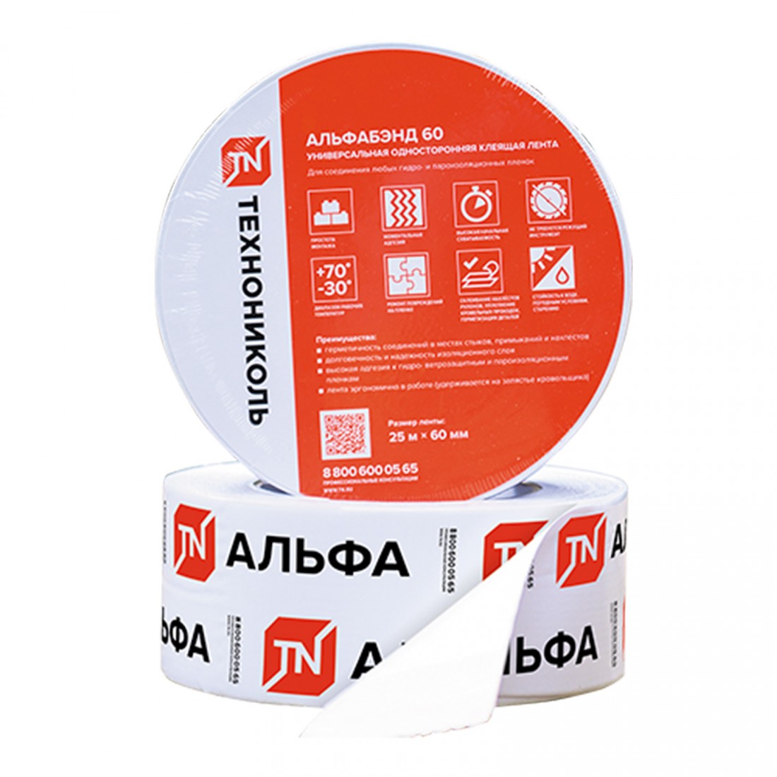 Лента соединительная ТехноНиколь Альфабэнд 60 односторонняя, 60 мм, 25 м, шт купить в Сургуте по оптовой цене в интернет магазине СтройПлатформа. Универсальная односторонняя клеящая лента для соединения любых гидро- и пароизоляционных пленок ТехноНиколь АЛЬФА. Армирована сеткой для обеспечения прочности и защиты места проклейки от механических повреждений. Предназначена для склеивания нахлёстов рулонов, уплотнения кровельных проходок, герметизации деталей. Температура монтажа не ниже 1°С.