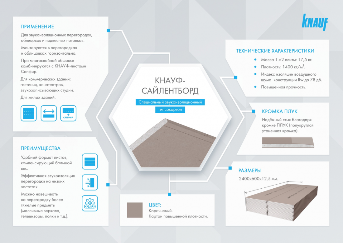 Гипсокартон Кнауф-Сайлентборд звукоизоляционный повышенной плотности ГСП-DR 2400х600х12,5 мм, лист купить в Сургуте по оптовой цене в интернет магазине СтройПлатформа. КНАУФ-Сайлентборд (ГСП-DR) — это звукоизоляционный гипсокартон. Относится к классу листов повышенной прочности и плотности.