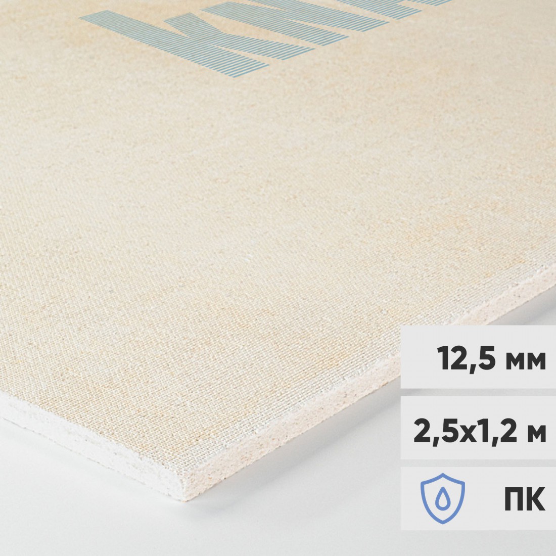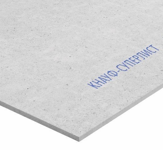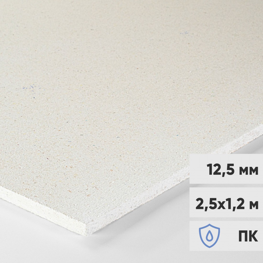 Гипсоволокнистый лист влагостойкий Кнауф-Суперлист ГВЛВ ПК 2500х1200х12,5 мм, лист купить в Сургуте по оптовой цене в интернет магазине СтройПлатформа. КНАУФ-суперлист ГВЛВ - однородный материал с высокой плотностью. Производится прессованием смеси гипсового вяжущего и волокон распушенной макулатуры. Обработан гидрофобизатором. Применяется в звукоизоляционных, огнестойких и ударостойких конструкциях в зданиях и помещениях с сухим, нормальным и влажным влажностными режимам,, в том числе в неотапливаемых помещениях.