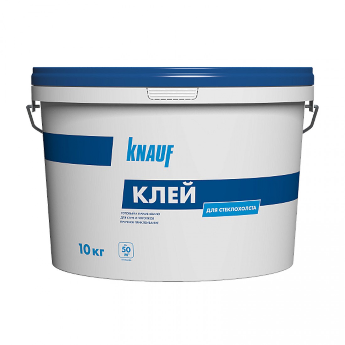 Клей для стеклохолста Кнауф 10 кг, шт купить в Сургуте по оптовой цене в интернет магазине СтройПлатформа. Водно-дисперсионный акриловый клей КНАУФ предназначен для приклеивания малярного стеклохолста, флизелина, стеклообоев и других тяжелых обоев на стены и потолки внутри помещений. Подходит для нанесения на гипсовые, цементные, бетонные и древесные основания.