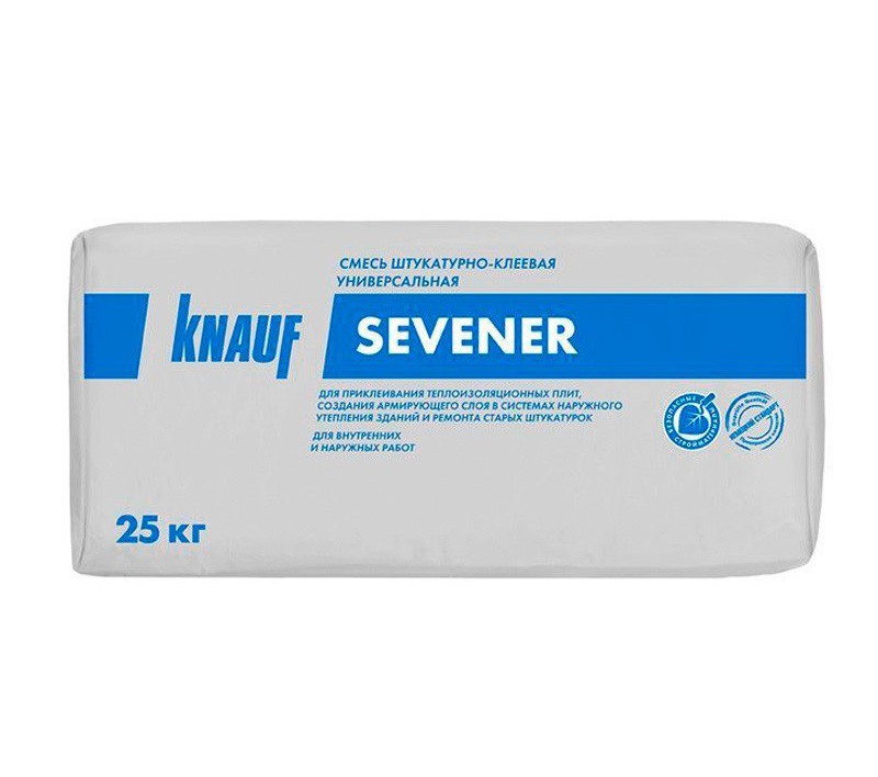 Штукатурно-клеевая смесь Knauf Севенер для приклеивания и армирования теплоизоляции 25 кг, шт купить в Сургуте по оптовой цене в интернет магазине СтройПлатформа. Knauf Севенер — сухая штукатурно-клеевая смесь на цементной основе, содержащая фракционированный песок, полимерные добавки и специальные волокна. Этот состав предназначен для выполнения широкого спектра работ в системах наружной теплоизоляции и ремонта фасадов.