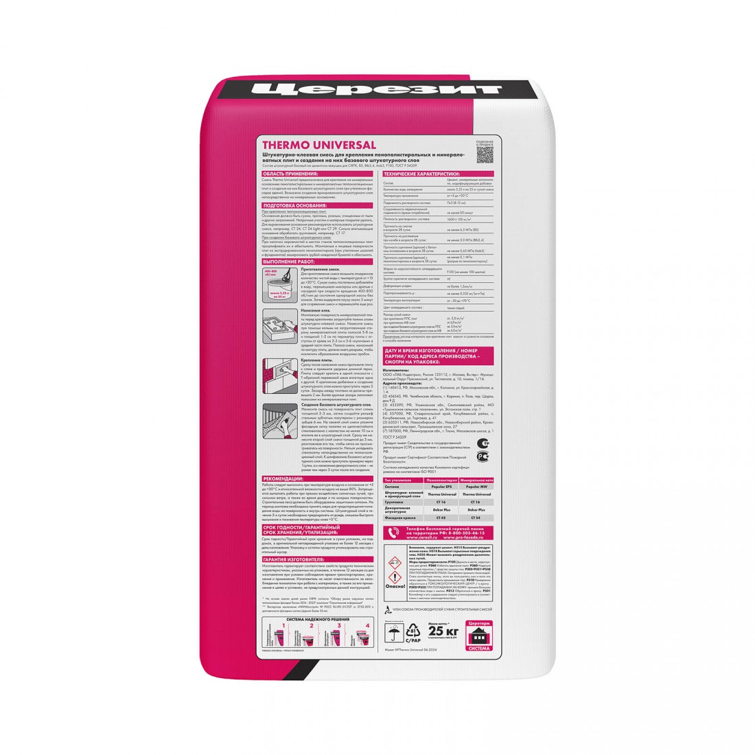 Штукатурно-клеевая смесь Церезит Thermo Universal для пенополистирола и минеральной ваты 25 кг, шт купить в Сургуте по оптовой цене в интернет магазине СтройПлатформа.