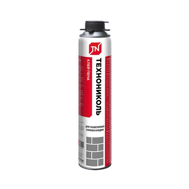 Клей-пена ТехноНиколь для газобетонных блоков и кладки 1000 мл, шт купить в Сургуте по оптовой цене в интернет магазине СтройПлатформа. Готовый к применению однокомпонентный профессиональный полиуретановый клей в аэрозольной упаковке для устройства кладки несущих стен и перегородок из газобетонных, керамических и других блоков. Обладает хорошей устойчивостью к влажности, плесени, старению. Устраняет мостики холода. Хорошая альтернатива традиционным тонкослойным и толстослойным цементным кладочным растворам. Цвет – темно-серый.