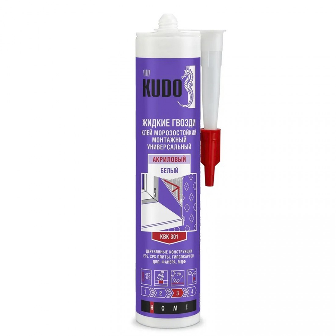 Клей жидкие гвозди Kudo KBT 301 монтажный универсальный морозостойкий акриловый белый 280 мл, шт купить в Сургуте по оптовой цене в интернет магазине СтройПлатформа. Высококачественный универсальный акриловый клей специально разработан для приклеивания изделий из древесины, ДСП, ДВП, EPS, XPS и UPVC на бетонные, кирпичные, каменные, металлические, оштукатуренные и деревянные поверхности. Идеально подходит для сборки деревянных конструкций, приклеивания гипсокартона, OSB-плит, декоративных элементов, подоконников, утеплителей различных видов. Предназначен для внутренних работ.