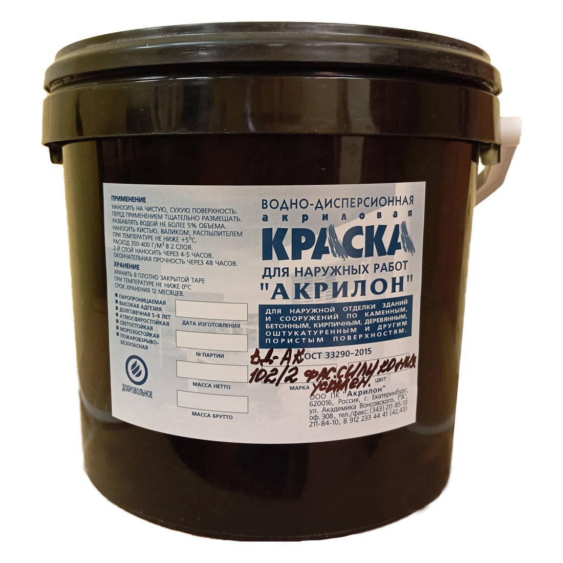 Краска Акрилон ВД-АК 102/2 фасадная усиленная водно-дисперсионная силиконизированная, база, 15 кг/ 10 л, шт купить в Сургуте по оптовой цене в интернет магазине СтройПлатформа. Единая база АС. Возможна колеровка в яркие и пастельные цвета по любым каталогам