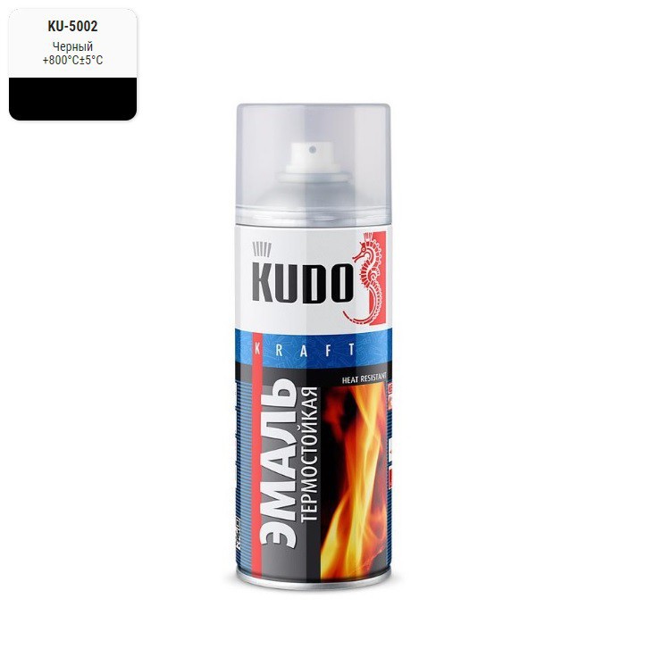 Эмаль-аэрозоль Kudo KRAFT термостойкая черная 520 мл, шт купить в Сургуте по оптовой цене в интернет магазине СтройПлатформа. Высококачественная кремнийорганическая термостойкая эмаль KUDO предназначена для окраски металлических изделий, подверженных нагреванию до температуры 800°C, таких как: компоненты выхлопной системы автомобилей, элементы трубопроводов и паропроводов, детали водонагревательного, котельного и прочего оборудования.