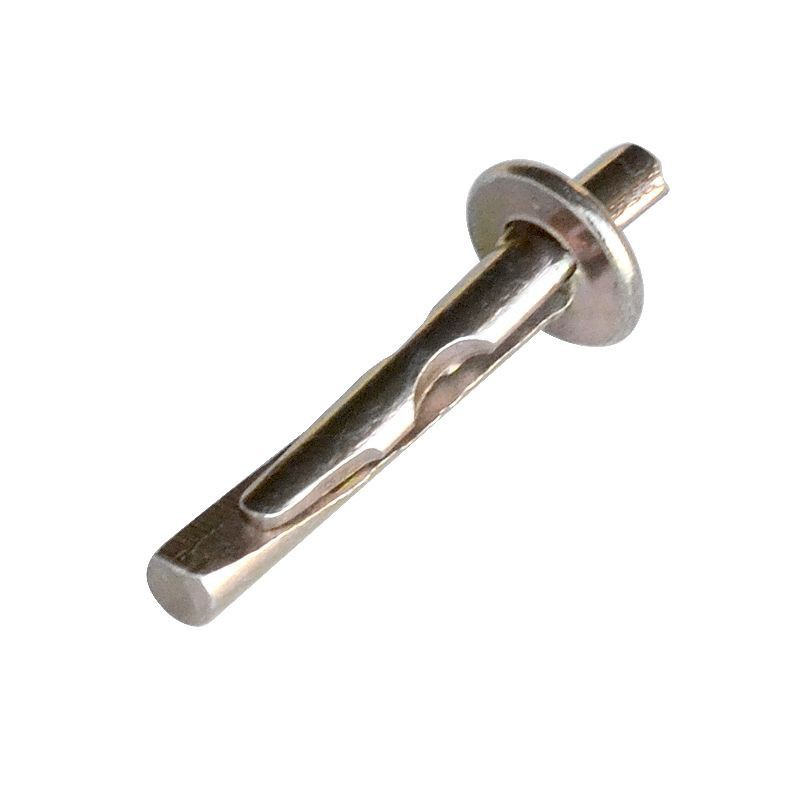 Анкер-клин изготовлен из высокопрочной стали с антикоррозионным оцинкованным покрытием, защищающим металл от преждевременного разрушения. Перед монтажом необходимо просверлить отверстие в основе, затем вставить анкер и вбить его молотоком. Монтируемую деталь после установки следует зафиксировать гайкой.