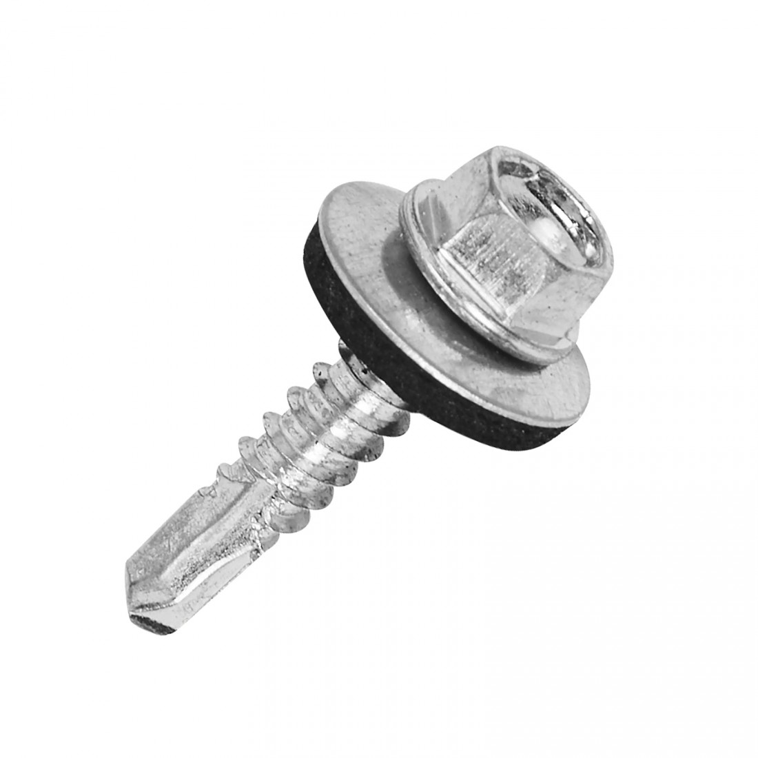 Саморез кровельный сверло 5,5х25 мм металл-металл оцинкованный, 250 шт/упак купить в Сургуте по оптовой цене в интернет магазине СтройПлатформа. Крепежный элемент со сверлом, шайбой и резиновой уплотняющей прокладкой, выполнен из оцинкованной стали, неокрашенен. Имеет шестигранную головку и шлиц в виде шестигранника под торцевую биту 10.