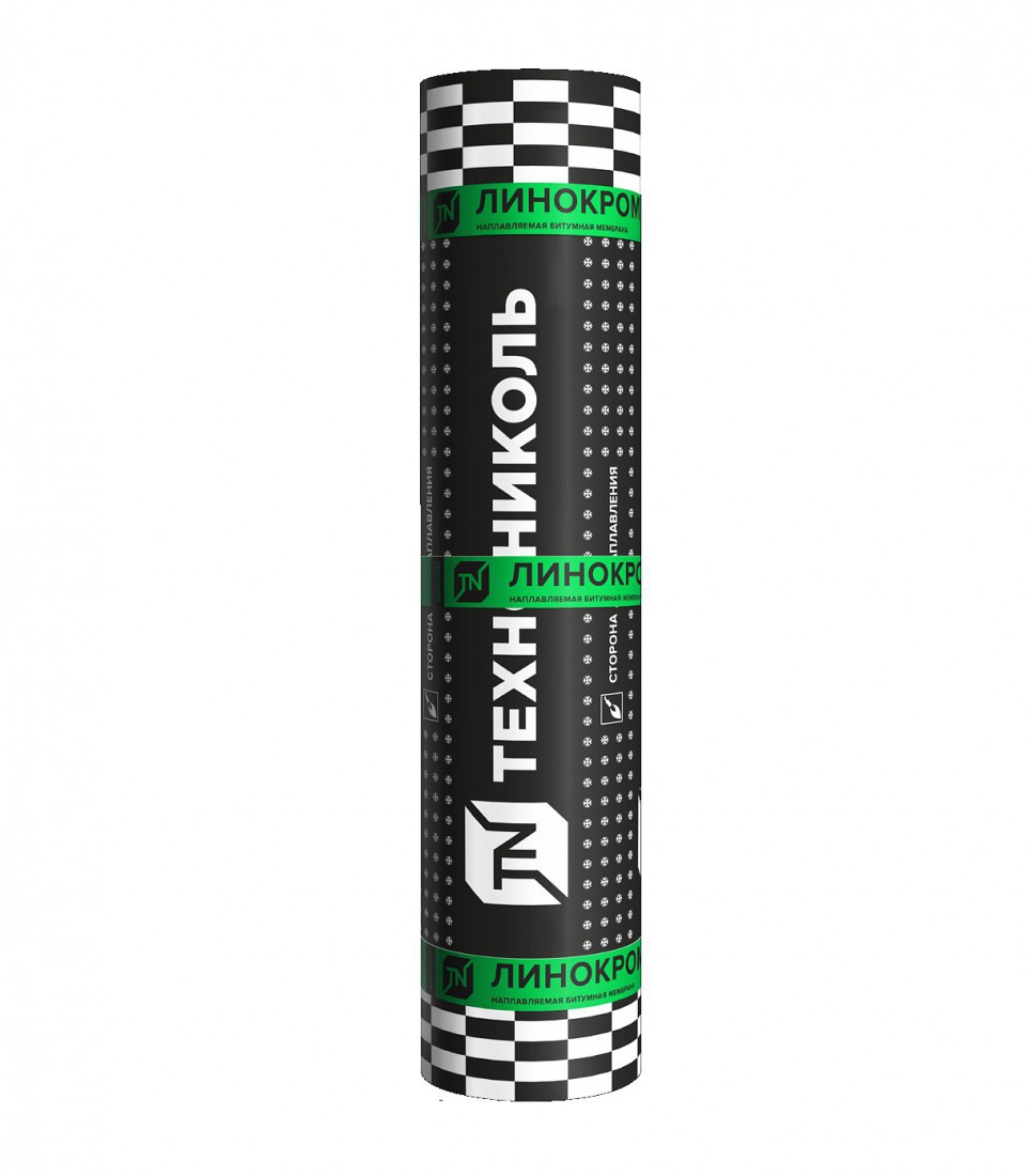 Наплавляемый кровельный материал производства ТехноНИКОЛЬ ЛИНОКРОМ ХПП имеет в своей основе стеклохолст, по обе стороны которого нанесено битумное вяжущее.