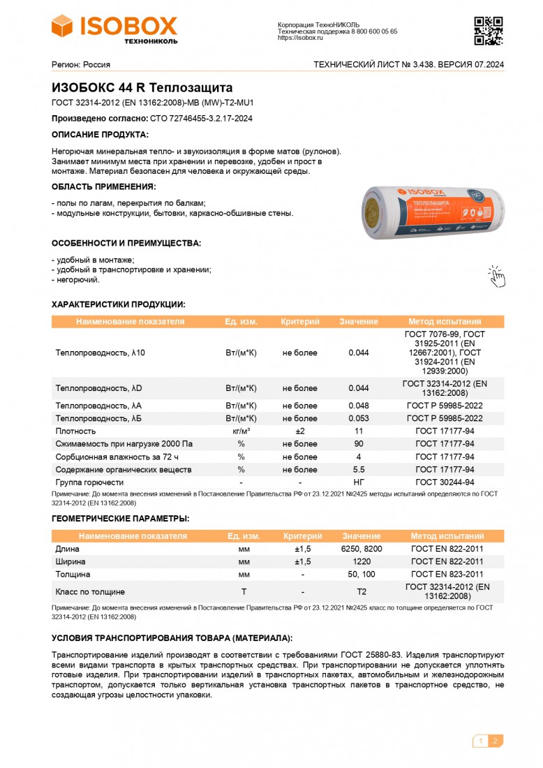 ИЗОБОКС 44 R Теплозащита – негорючая минеральная тепло- и звукоизоляция в рулонной форме. Материал безопасен для человека и окружающей среды, легко транспортируется и монтируется, занимая минимум места при хранении.