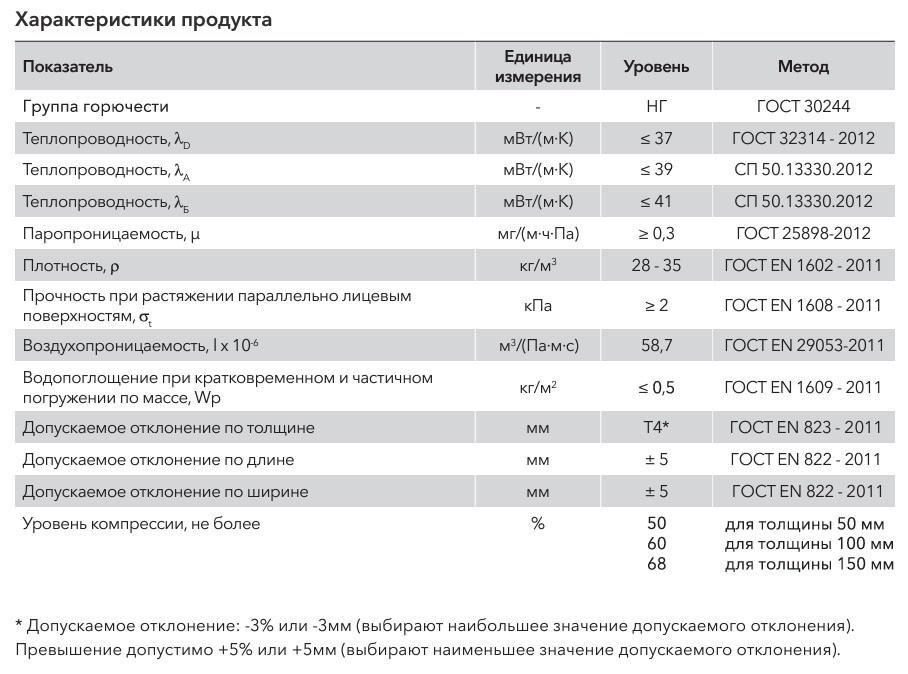 Плотность, кг/м3: | 28-35 кг/м3 |