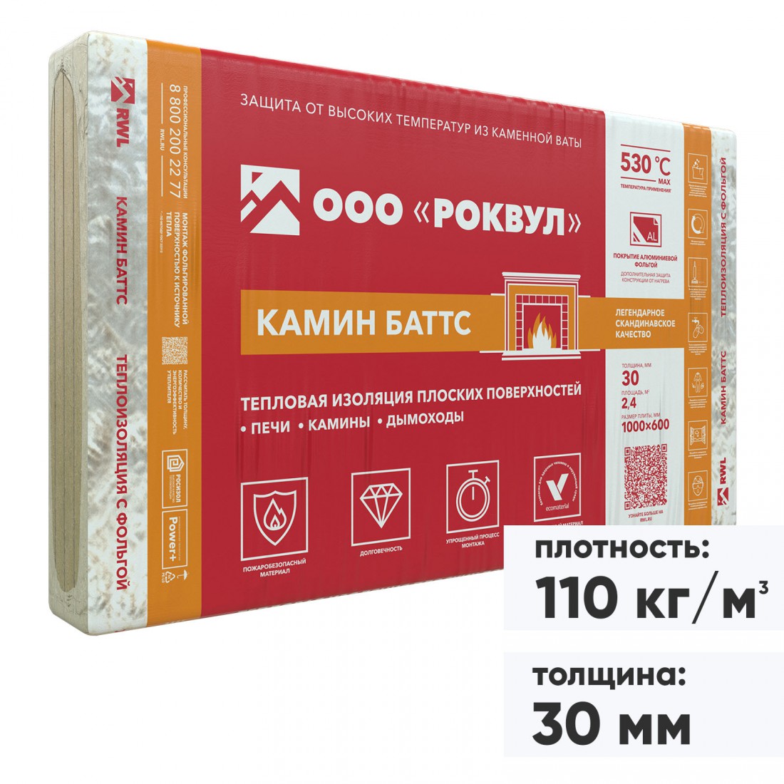 Минеральная вата Роквул Камин Баттс 110 кг/м3 1000х600х30 мм, 4 шт/упак купить в Сургуте по оптовой цене в интернет магазине СтройПлатформа.