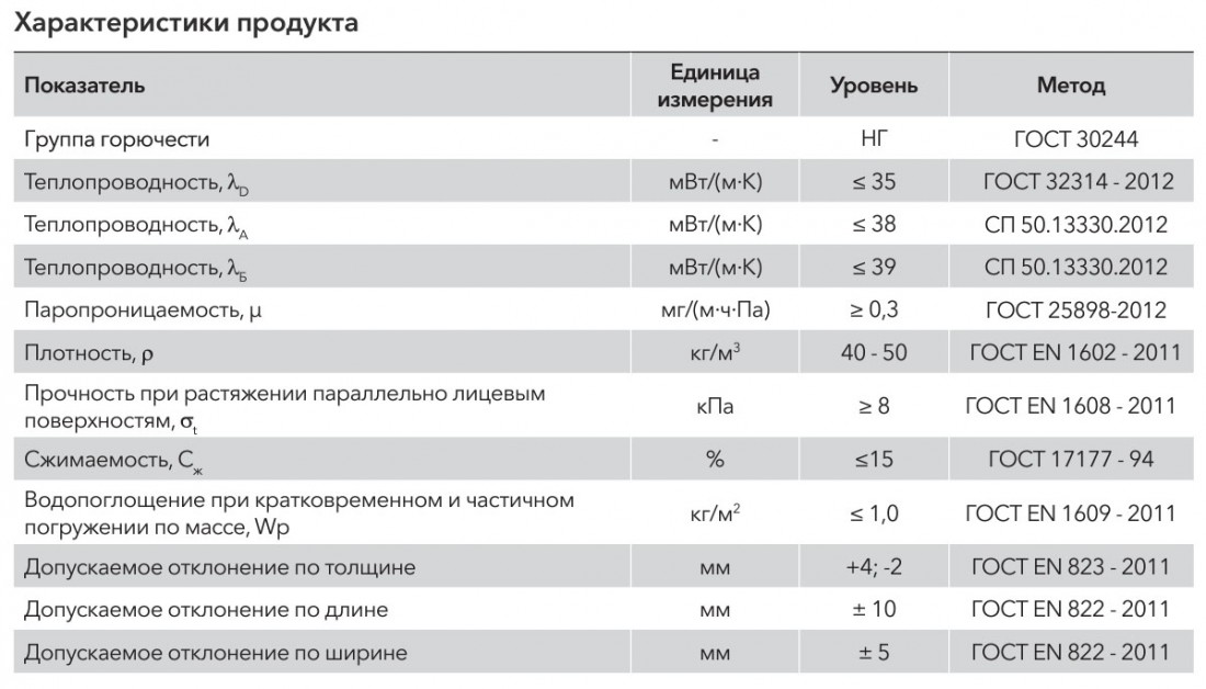 Плотность, кг/м3: | 40-50 кг/м3 |