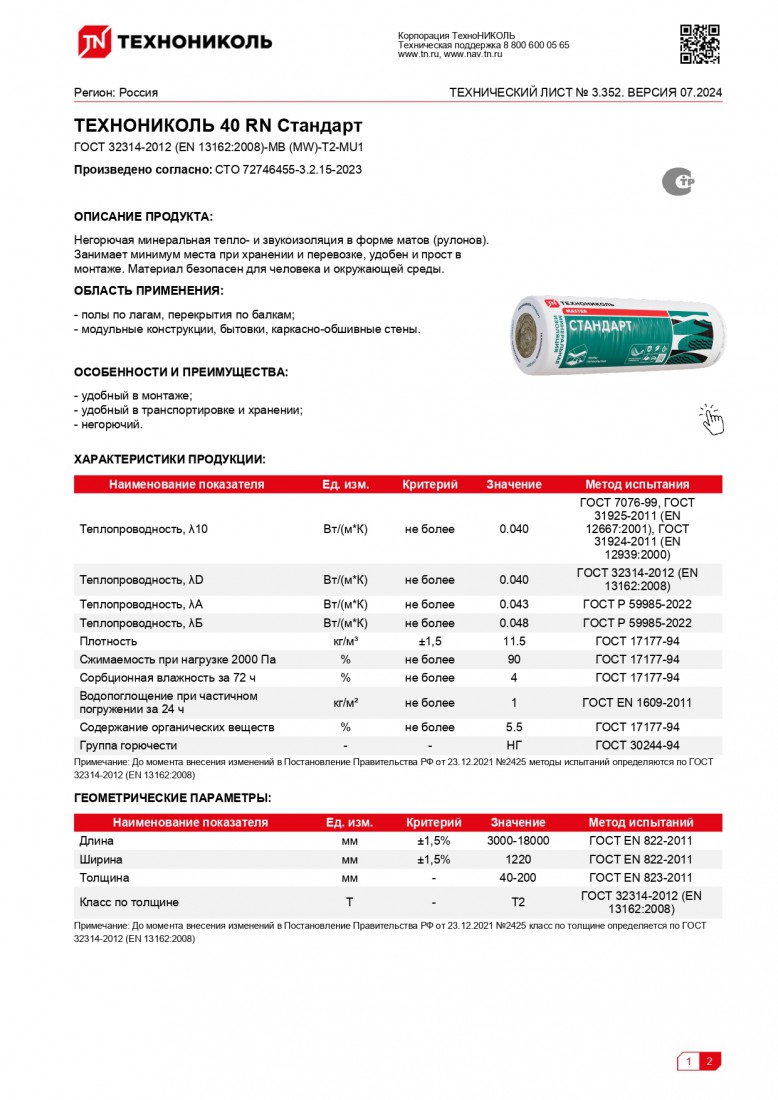 Минеральная вата Технониколь Стандарт 40 RN 6150х1220х100 мм, 1 шт/упак купить в Сургуте по оптовой цене в интернет магазине СтройПлатформа.
