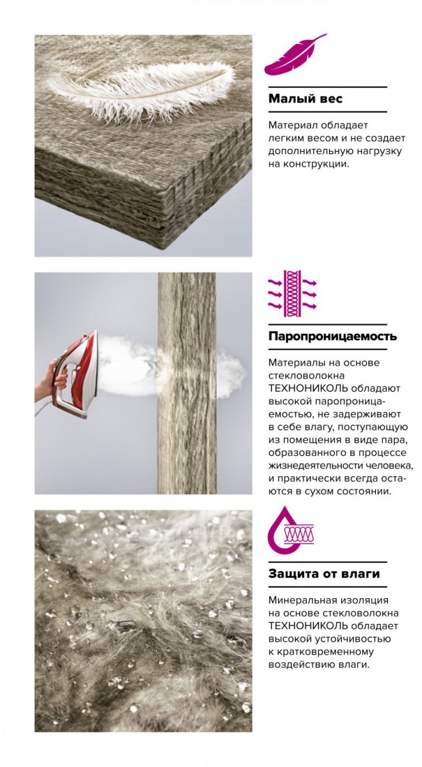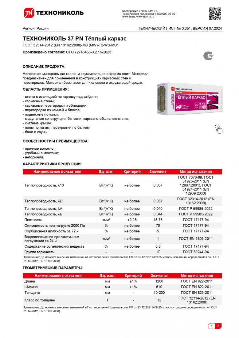Негорючая минеральная тепло- и звукоизоляция в форме плит. Материал предназначен для применения в конструкциях каркасных стен и перегородок. Материал безопасен для человека и окружающей среды.