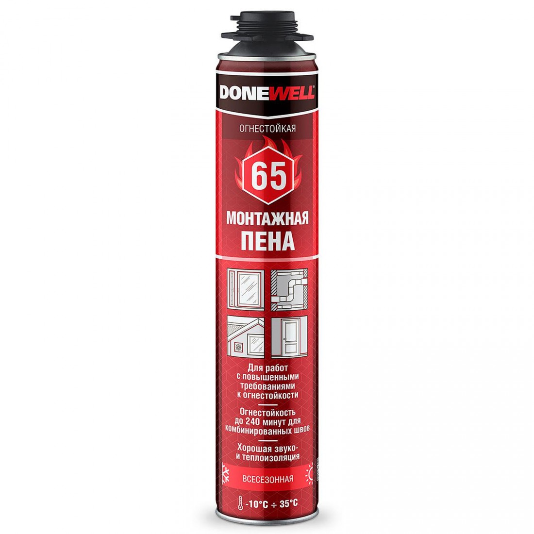 Пена монтажная профессиональная Donewell 65 огнестойкая всесезонная 1000 мл, шт купить в Сургуте по оптовой цене в интернет магазине СтройПлатформа. Продукт специально разработан для монтажа светопрозрачных конструкций, а также широкого спектра профессионального применения в области герметизации и тепло- и звукоизоляции при строительстве. Идеально подходит для конструкций с повышенными требованиями огнестойкости.