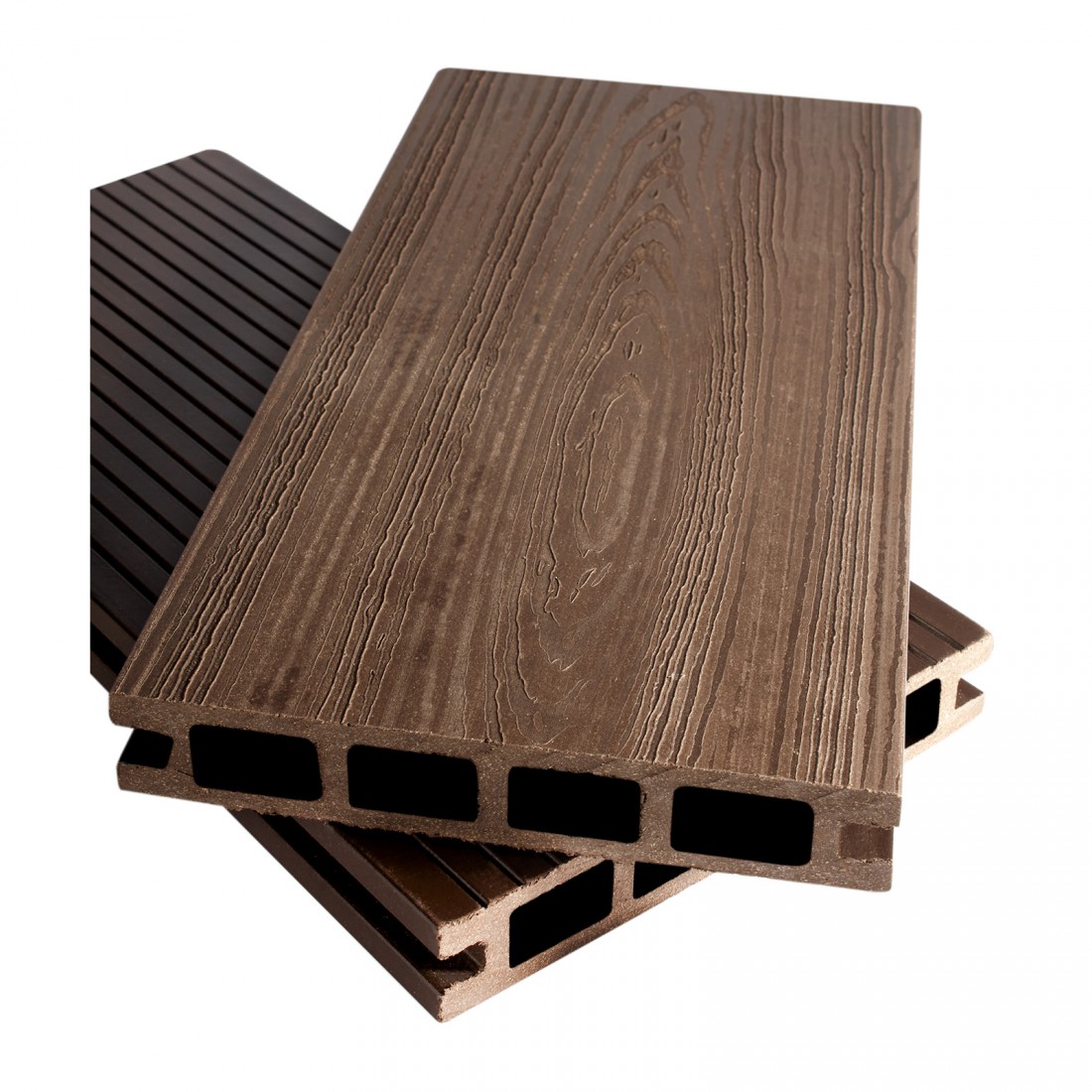 Доска террасная ДПК Винтаж брашировка Венге 24х140х3000 мм, шт купить в Сургуте по оптовой цене в интернет магазине СтройПлатформа. Доска террасная из ДПК (древесно-полимерный композит) предназначена для укрытия полов на верандах, беседках, открытых и закрытых балконов. Также подходит для создания открытых и закрытых террас, оформления придомовой территории, для организации покрытий детских площадок, пирсов, причалов, зон.