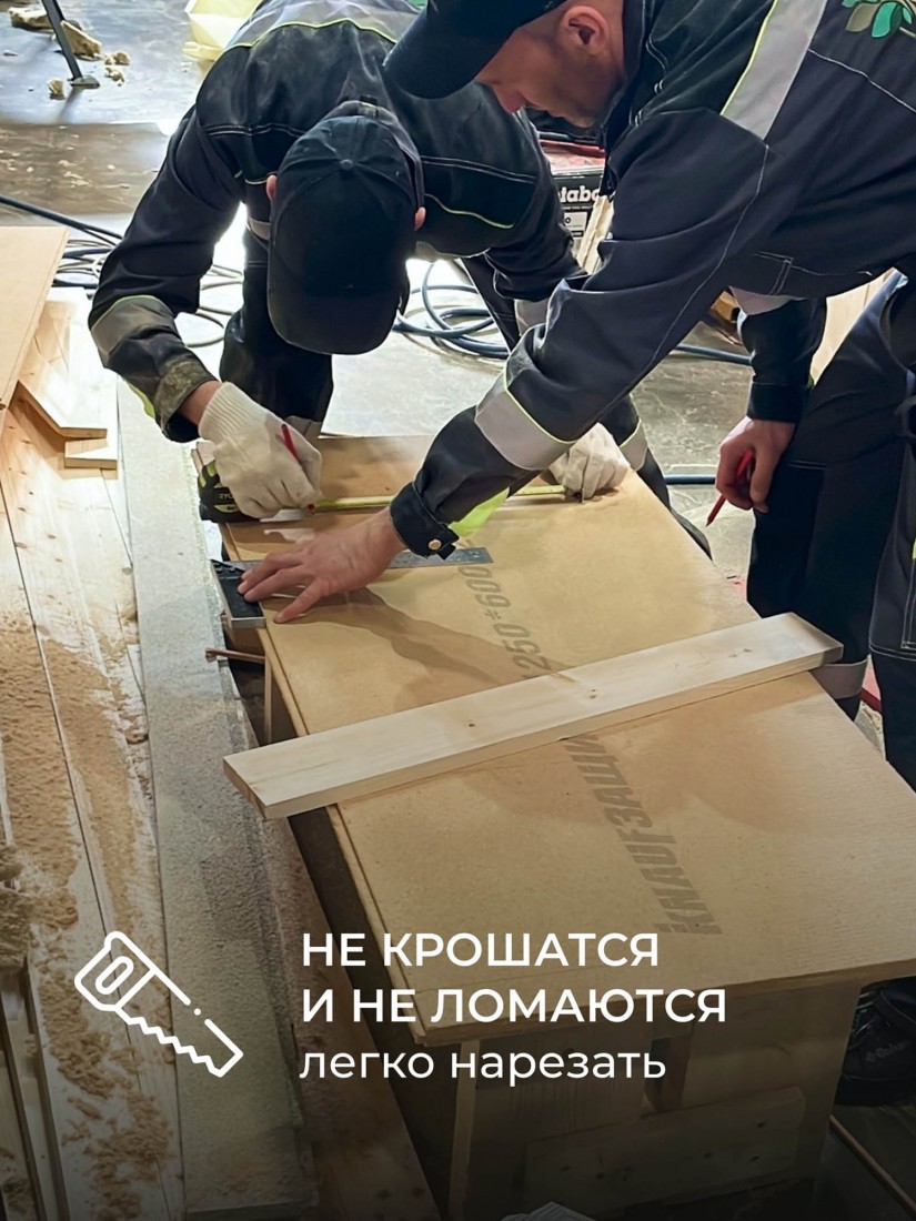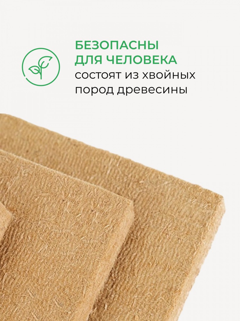 Состоит из натуральных волокон древесины хвойных пород, связанных между собой смолой на полиуретановой основе MDI и парафиновой эмульсией. Этот состав обеспечивает абсолютную безопасность для человека и окружающей среды.