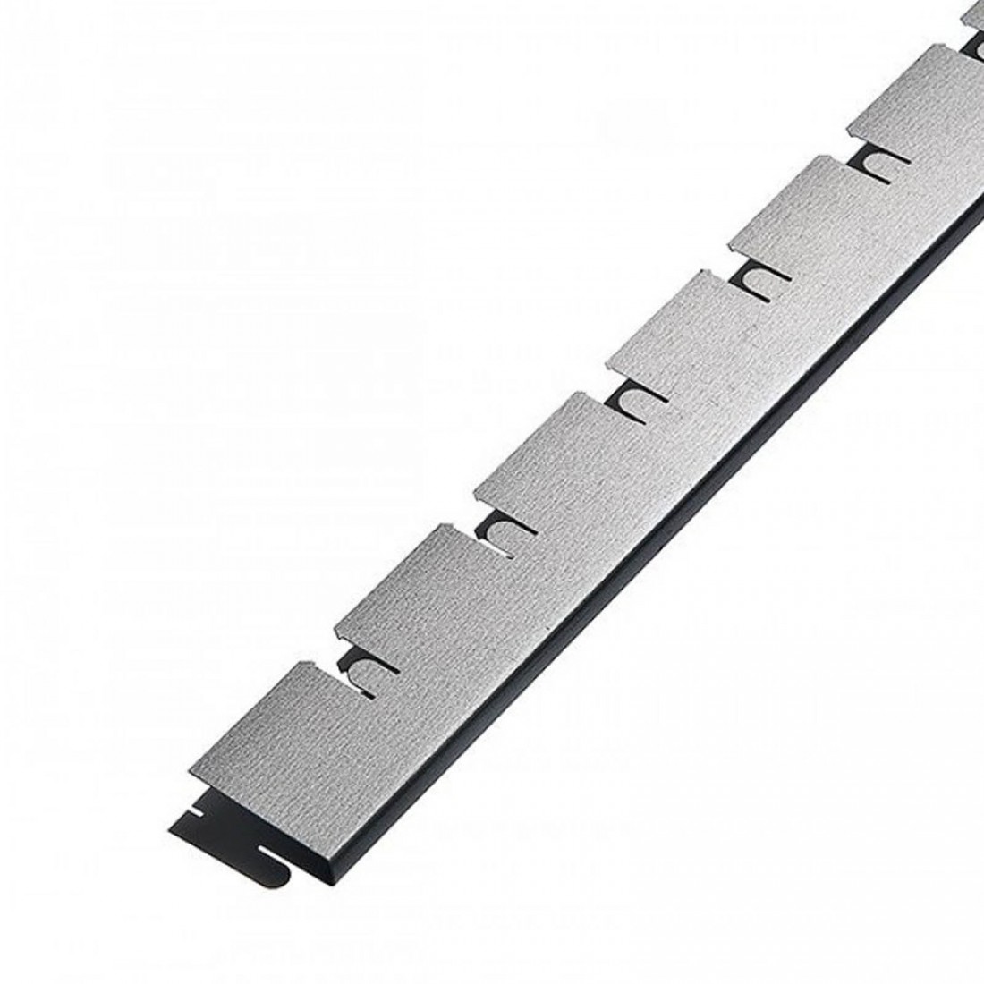 Профиль изготовлен из легкого алюминия с антикоррозийным покрытием и стойким к истиранию декоративным напылением в цвете «металлик серебро». Материал не поддерживает горение, устойчив к влаге и перепадам температуры, что делает элемент пригодным для установки в помещениях с высокими эксплуатационными требованиями.