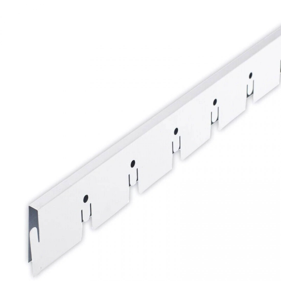 Изделие выполнено из прочного алюминиевого профиля с декоративным покрытием белого цвета. Благодаря высокой коррозионной стойкости и жёсткости, направляющая сохраняет форму и надёжно фиксирует элементы потолочной системы.