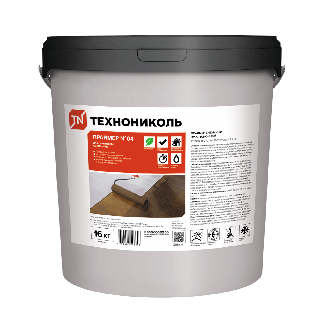 Праймер битумный эмульсионный ТехноНиколь №04 20 л (16 кг), шт купить в Сургуте по оптовой цене в интернет магазине СтройПлатформа. Праймер битумный эмульсионный ТехноНиколь № 04 – это готовый к применению материал, являющийся водной эмульсией нефтяного битума, модифицированного технологическими добавками. Не содержит растворителей.